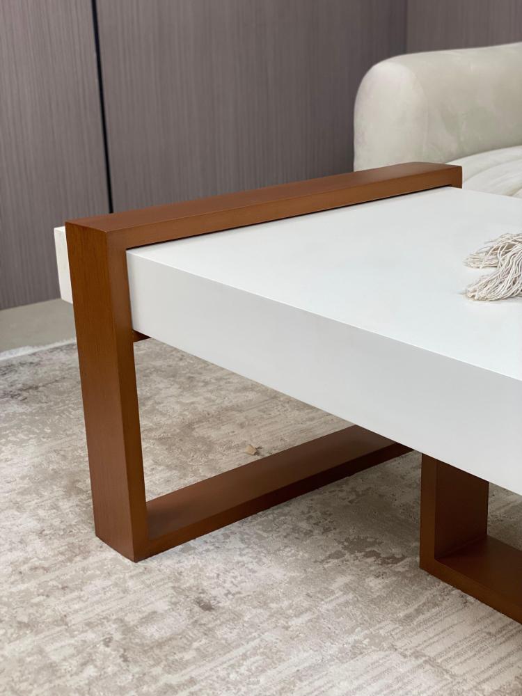 ارتقِ بأناقة منزلك مع هذه الطاولة القهوة الفاخرة ذات التصميم العصري المميز. بسطحها الأبيض المصنوع من خشب MDF عالي الجودة، تمنحك الطاولة مزيجاً مثالياً من المتانة والجمال. قاعدة الطاولة بلون خشبي دافئ تضيف لمسة فنية راقية تناسب مختلف أنماط الديكور، من الكلاسيكي إلى العصري.