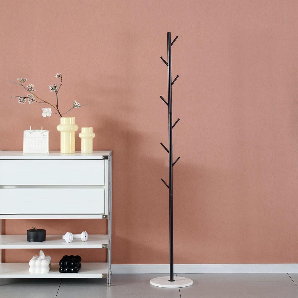 علاقة ملابس باللون الأسود بخطافات أنسيابية وبقاعدة رخامية