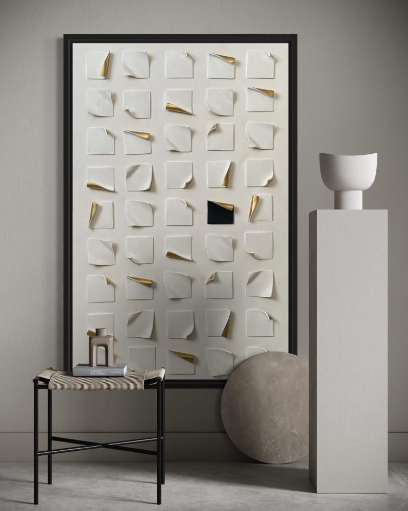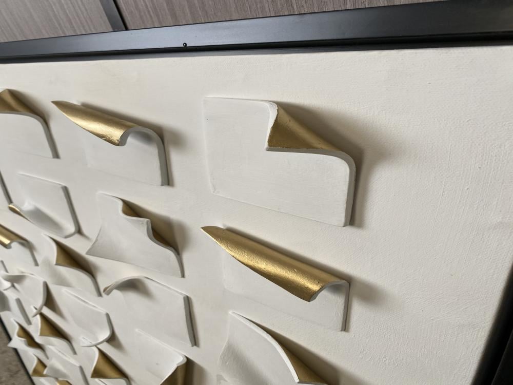 • الطابع الفني: تم تنسيق أشكال الجبس على اللوحة بشكل دقيق وعصري، ليكون نقطة جذب تلفت الأنظار من الوهلة الأولى.