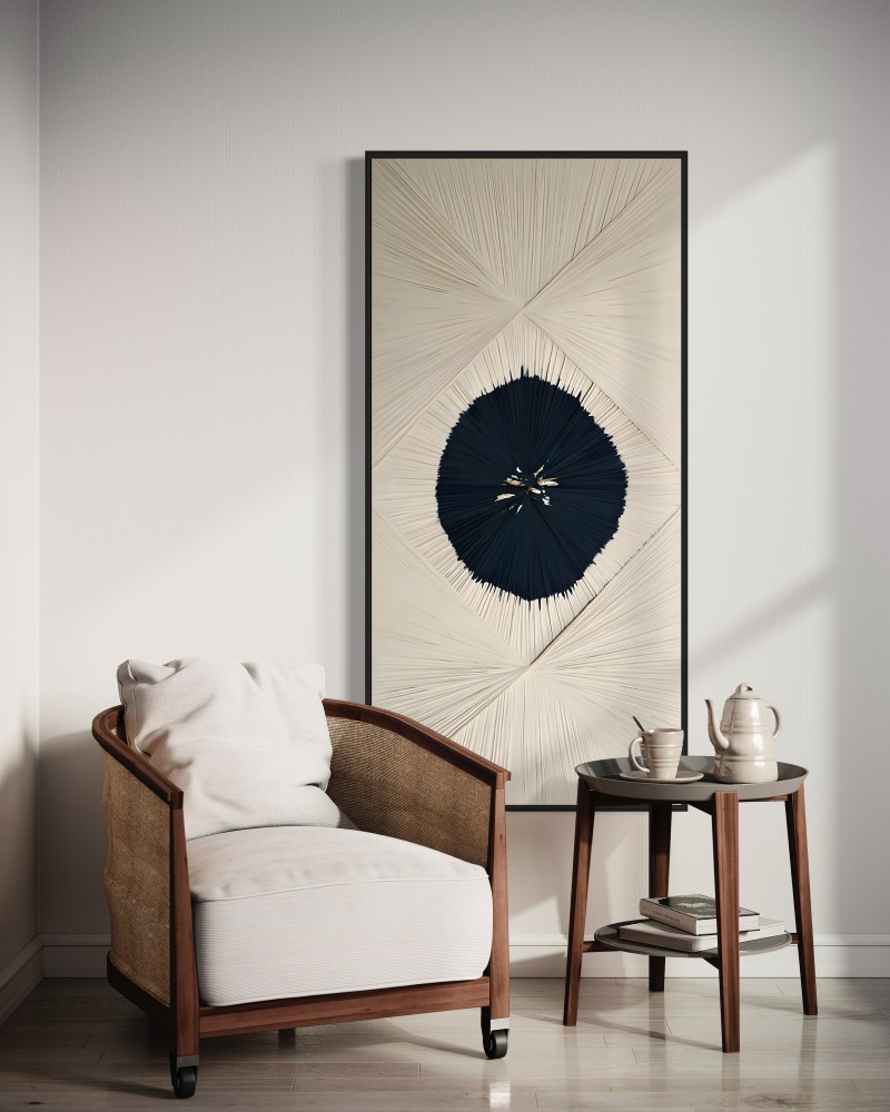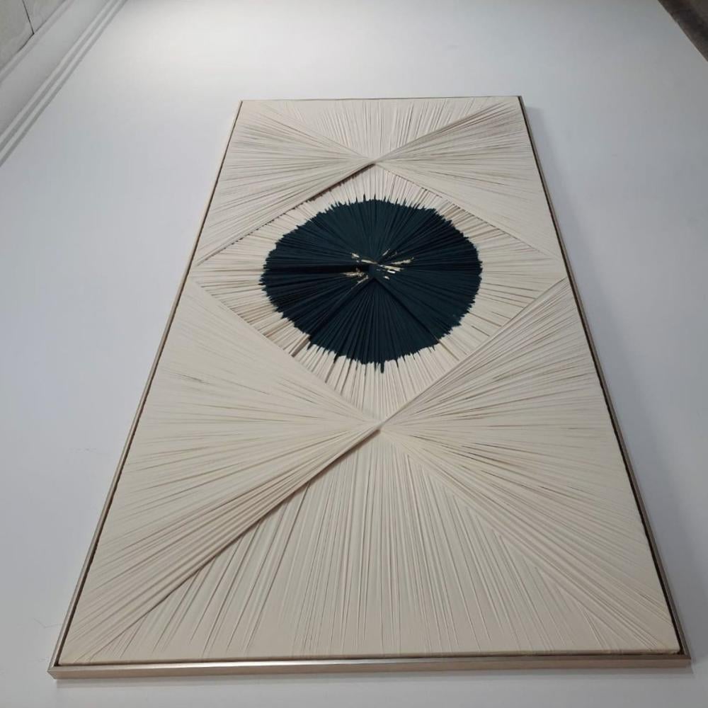 لوحة فنيه تدعوك للتأمل الداخلي لتكتشف العديد من الأسرار، فاختيار الألوان الهادئة والخطوط والأشكال وتجانسها معًا بهذه الدقة تعبر عن مدى براعة المصمم، خاصةً أن اللوحة تعكس الفن التجريدي في المقام الأول، وذلك لخلق معنى مميز غير تقليدي.