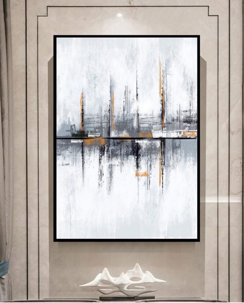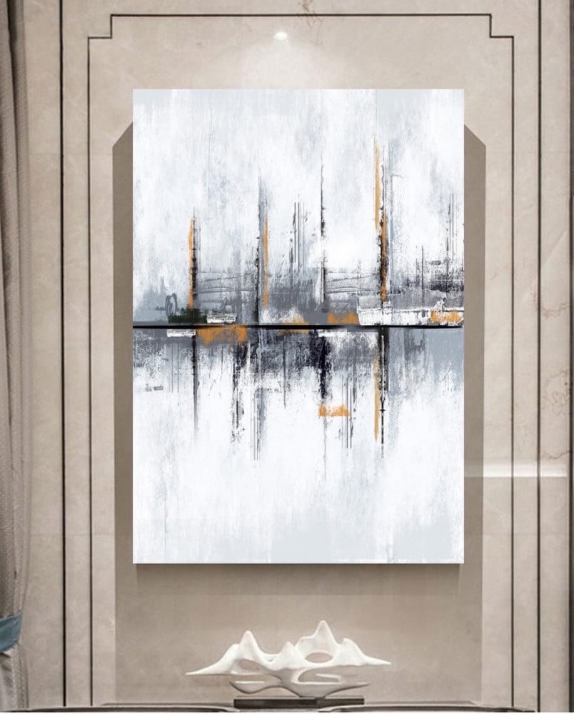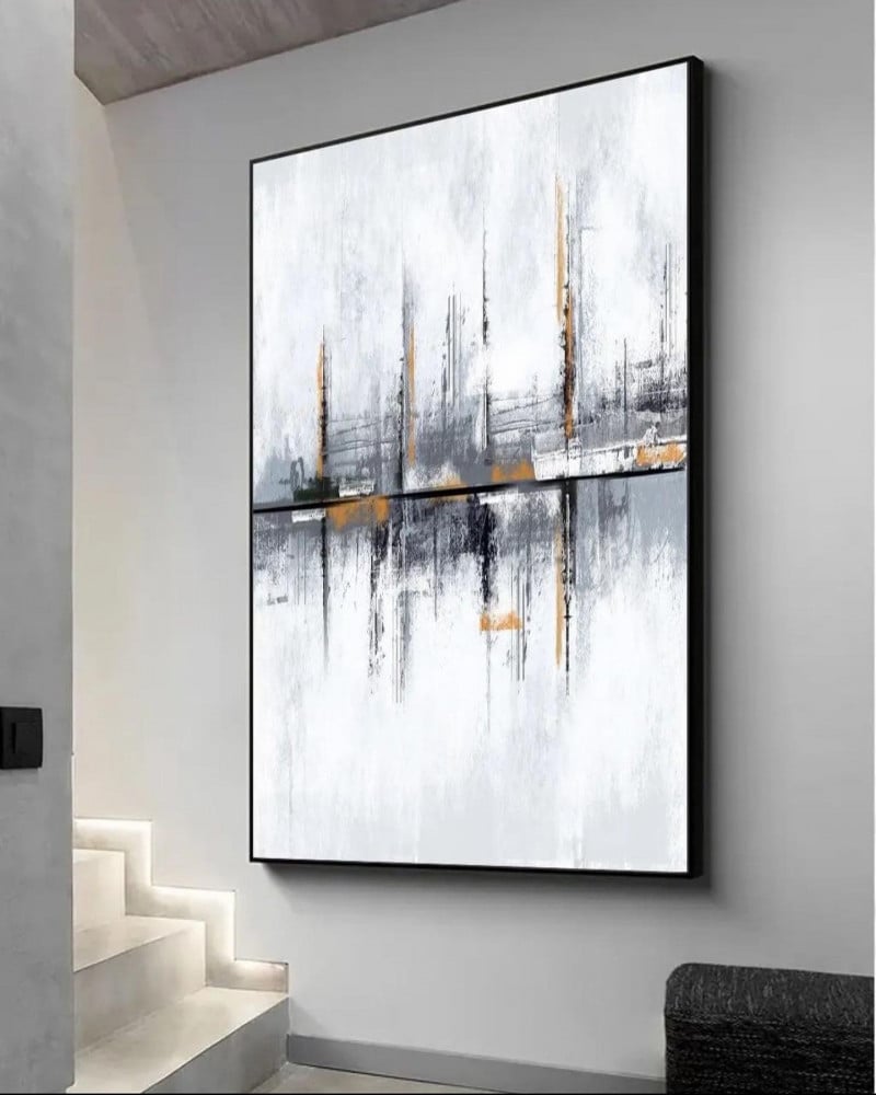 - لوحة من الفن التجريدي الحديث، مزيج من اللون الأبيض الفخم.