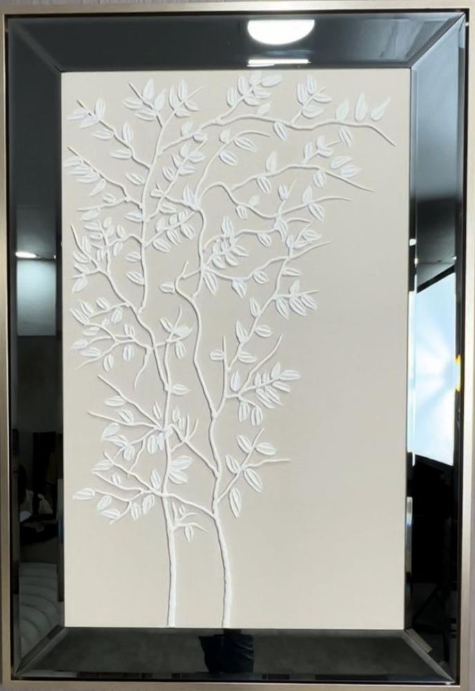 أضف لمسة فنية أنيقة إلى ديكور منزلك مع هذه اللوحة المصنوعة من الجبس والمثبتة على قماش كانفس عالي الجودة وتكتمل الاناقة بالمرايا الجانبية للوحة, لتكون خياراً مثالياً لتزيين جدار الصالة أو المجلس أو أي مساحة داخلية تحتاج إلى لمسة جمالية مميزة.