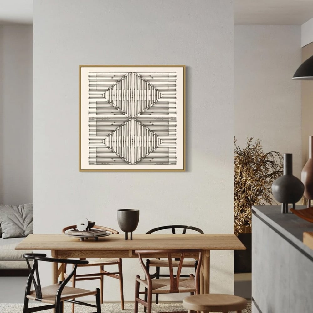 امنح مساحتك جوًا عصريًا يجذب الأنظار مع لوحة جدارية حديثة من أفكار، والتي صُممت لتجمع بين البساطة والرقي والجرأة، في تناغم يخلق تباين رائع بين الخطوط المستقيمة والمربعات التي تعكس ديناميكية الحداثة والتطور الفني، وتمنح الجدار لمسة من التفرد لينبض بالطاقة العصرية المميزة.