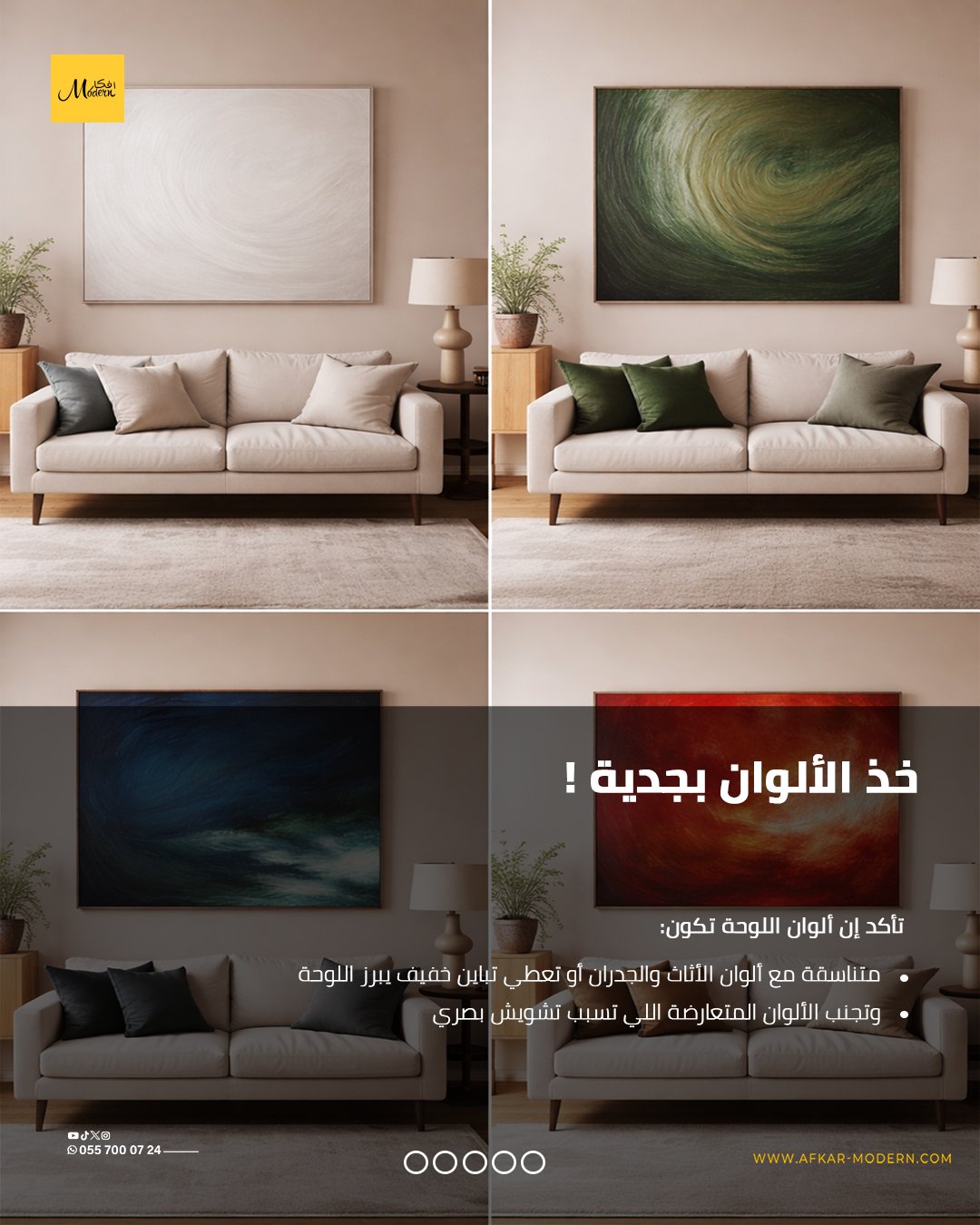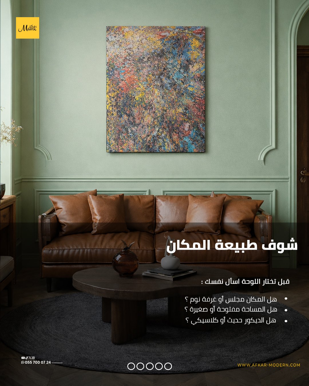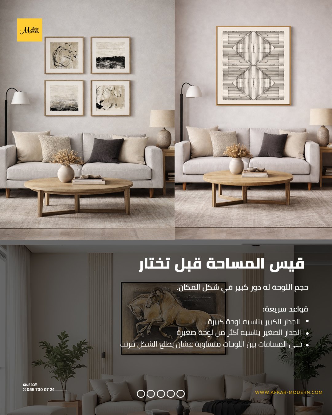 اكتشف أهم الخطوات التي تساعدك على اختيار لوحة مناسبة لمساحتك من حيث المقاس، الألوان، والأسلوب، لتنسجم مع المكان وتمنح الجدار حضورًا متوازنًا.