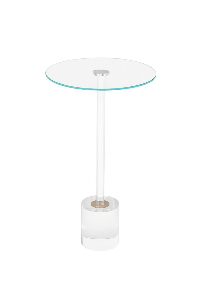 - المادة: سطح دائري من الزجاج الشفاف، مدعوم بعمود من الأكريليك الشفاف وقاعدة اسطوانية متينة